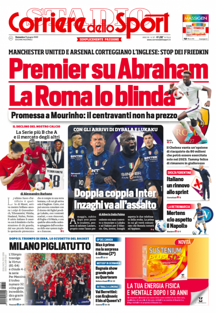 La rassegna stampa di Calciomercato.it vi propone i titoli principali sulla prima pagina di oggi, domenica 19 giugno 2022, del ‘Corriere dello Sport’.