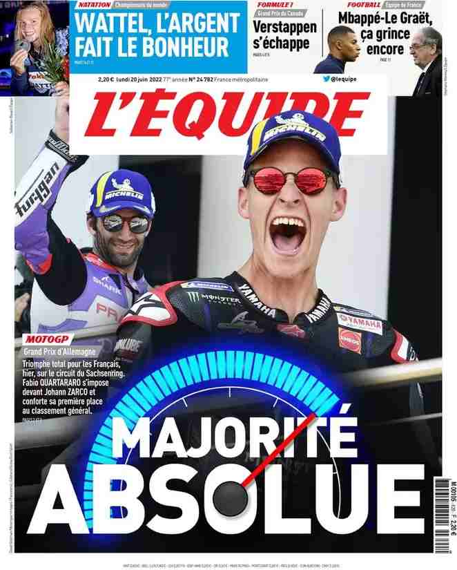 I titoli principali sulla prima pagina del quotidiano sportivo francese, L’Equipe