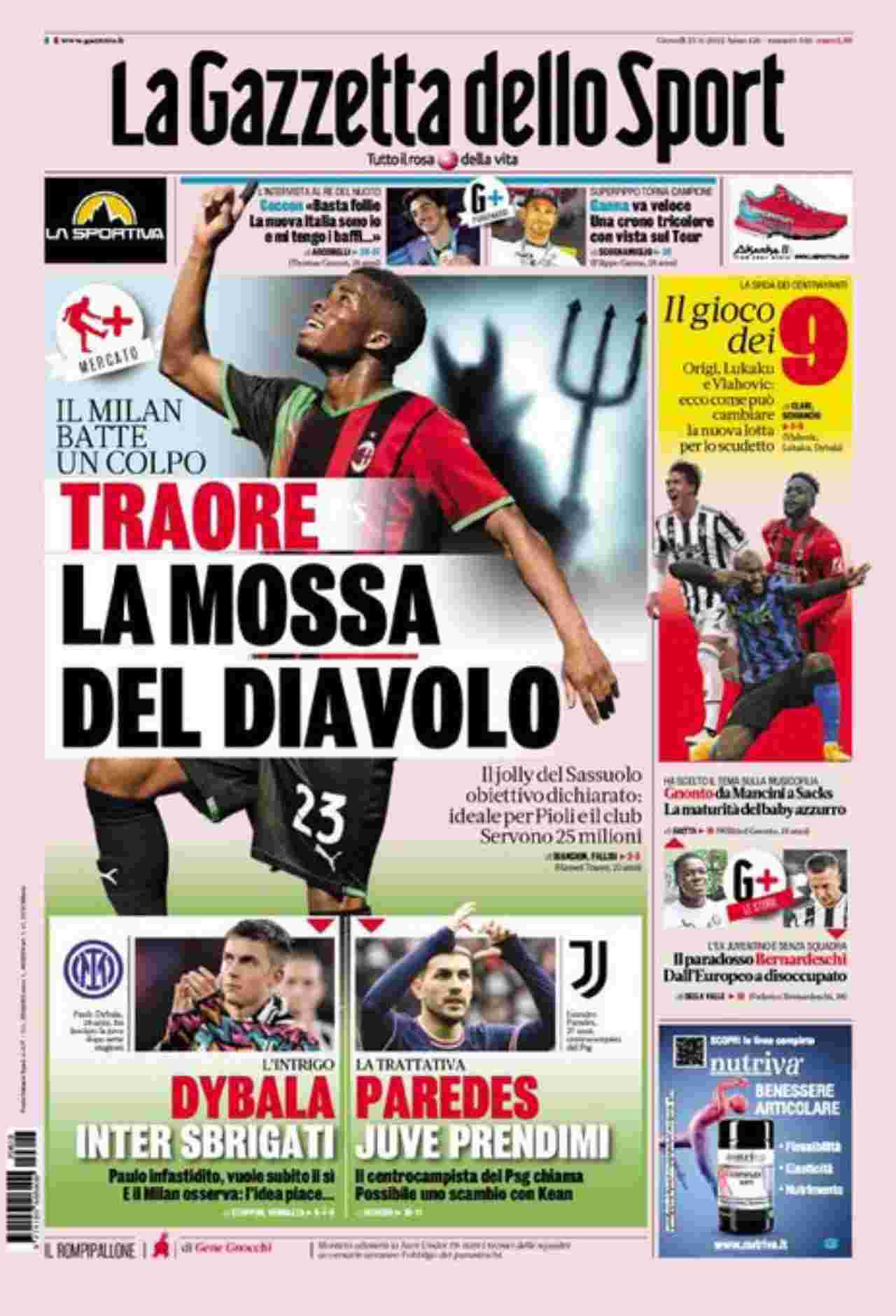 La rassegna stampa di Calciomercato.it vi propone i titoli principali sulla prima pagina di oggi, giovedì 23 giugno 2022, de ‘La Gazzetta dello Sport’.