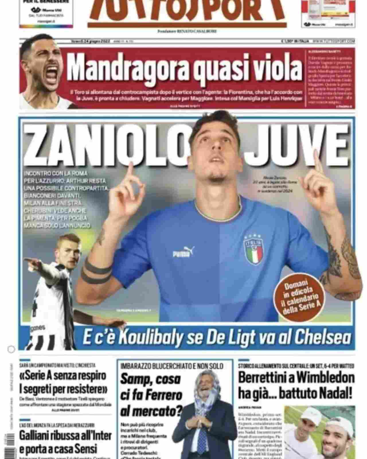 La rassegna stampa di Calciomercato.it vi propone i titoli principali sulla prima pagina di oggi, venerdì 24 giugno 2022, di ‘Tuttosport’.
