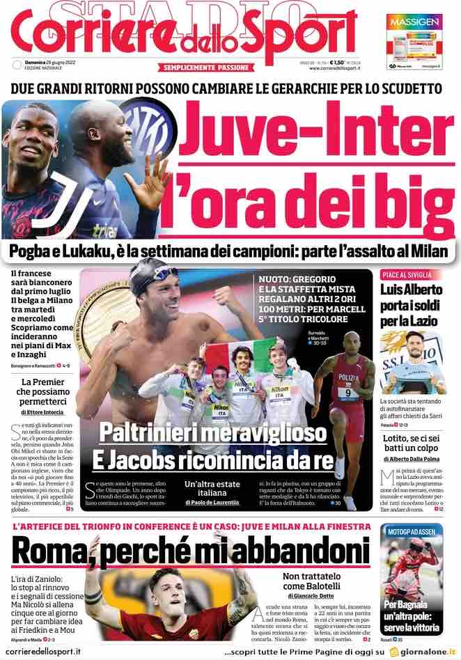 La rassegna stampa di Calciomercato.it vi propone i titoli principali sulla prima pagina di oggi, domenica giugno 2022, del ‘Corriere dello Sport’.