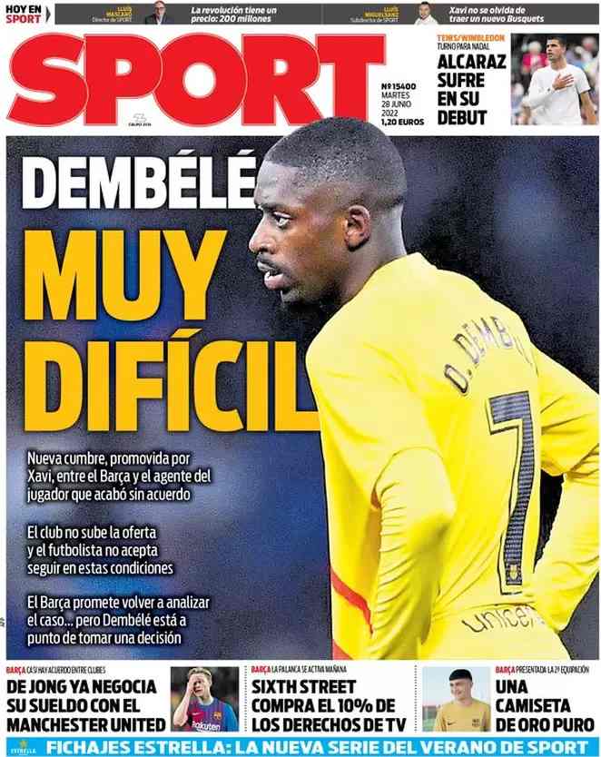 I titoli principali sulla prima pagina del quotidiano sportivo, Sport