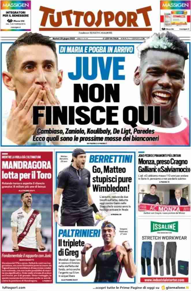 La rassegna stampa di Calciomercato.it vi propone i titoli principali sulla prima pagina di oggi, martedì 28 giugno 2022, di ‘Tuttosport’.