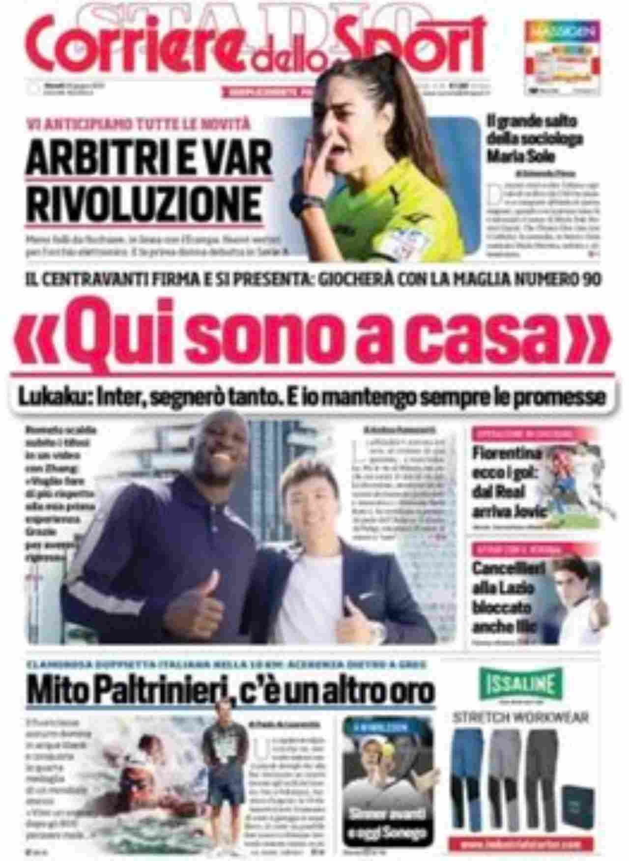 I titoli principali sulla prima pagina del quotidiano sportivo, Corriere dello Sport