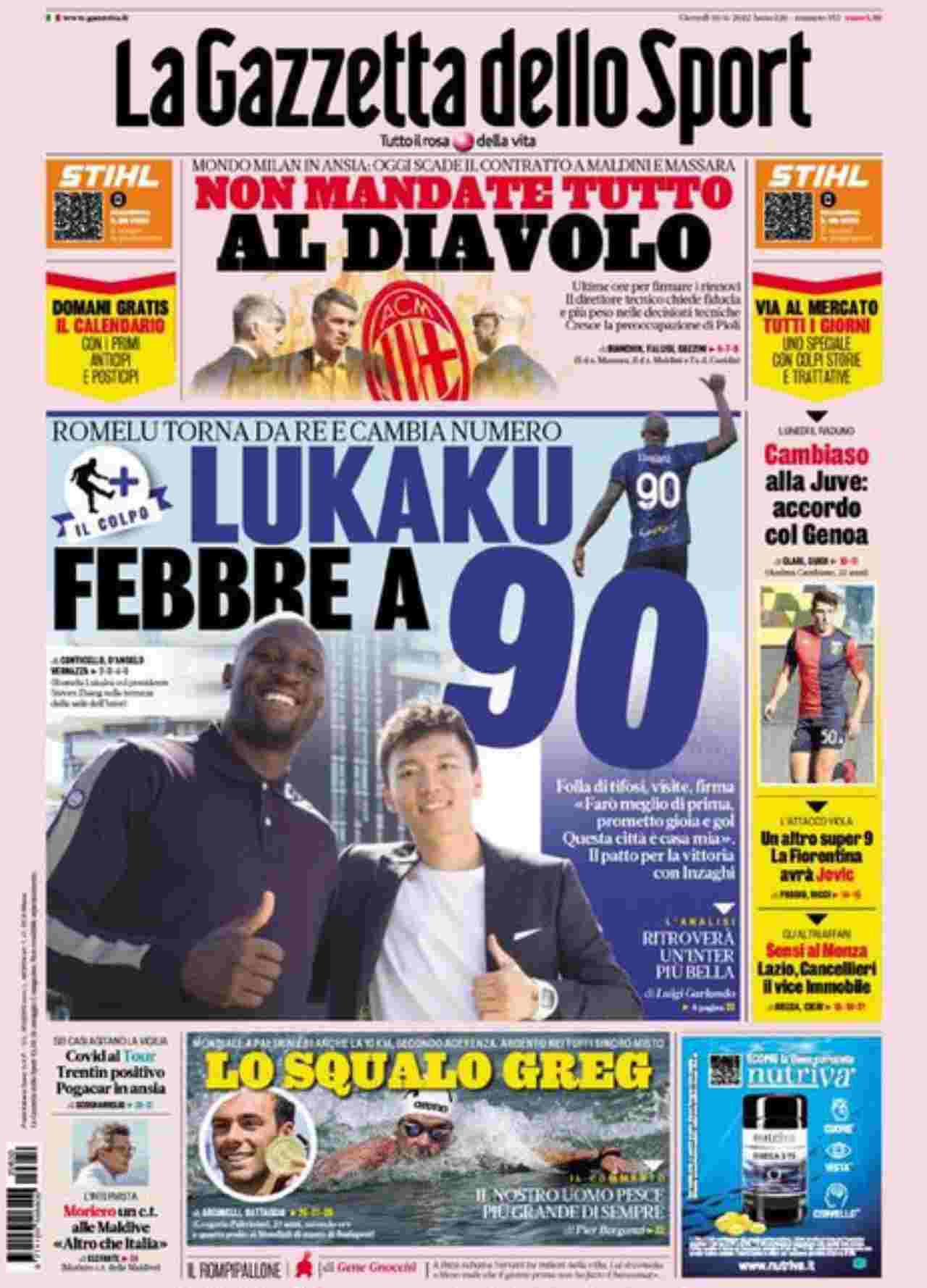 La rassegna stampa di Calciomercato.it vi propone i titoli principali sulla prima pagina di oggi, giovedì 30 giugno 2022, de ‘La Gazzetta dello Sport’.