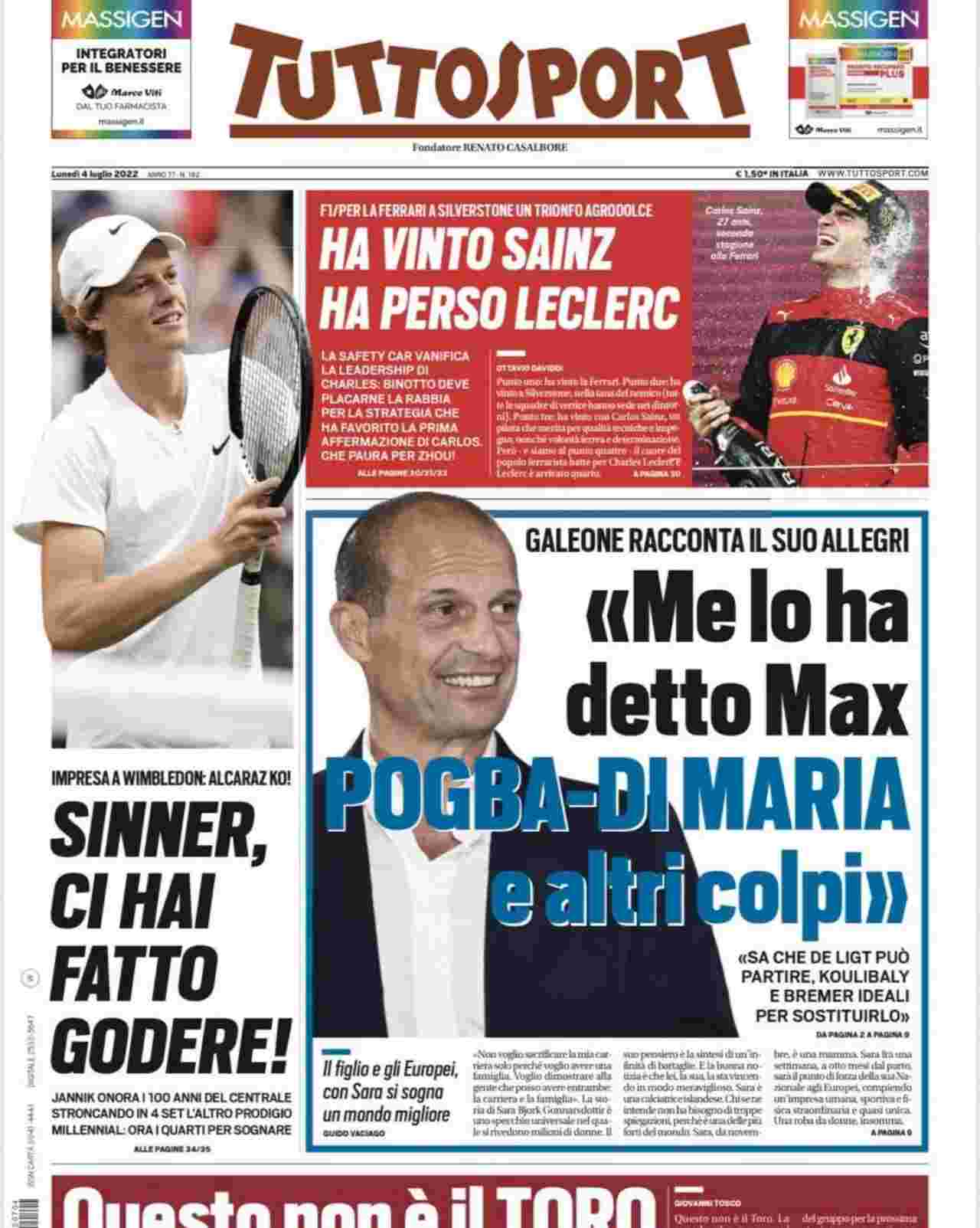 La rassegna stampa di Calciomercato.it vi propone i titoli principali sulla prima pagina di oggi, lunedì 4 luglio 2022, di ‘Tuttosport’.