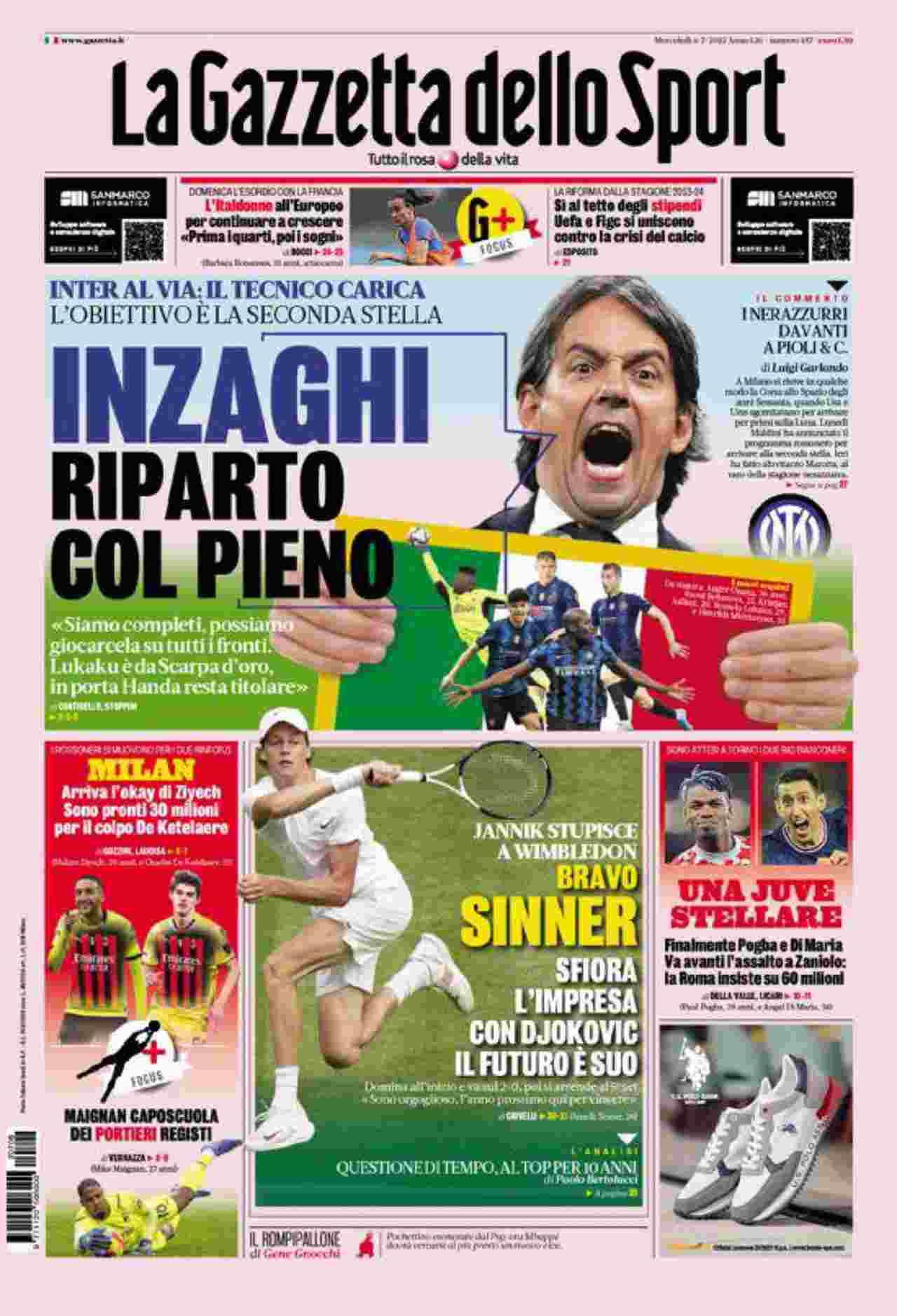 La rassegna stampa di Calciomercato.it vi propone i titoli principali sulla prima pagina di oggi, mercoledì 6 luglio 2022, de ‘La Gazzetta dello Sport’.