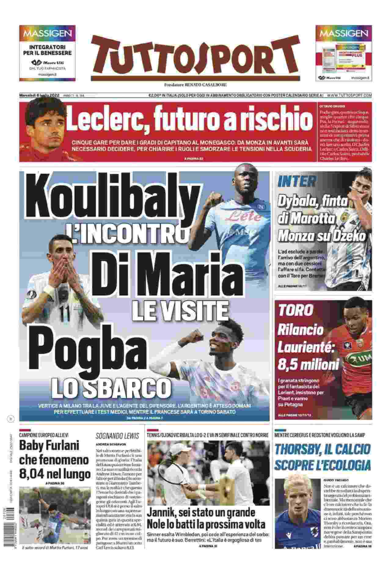 La rassegna stampa di Calciomercato.it vi propone i titoli principali sulla prima pagina di oggi, mercoledì 6 luglio 2022, di ‘Tuttosport’.