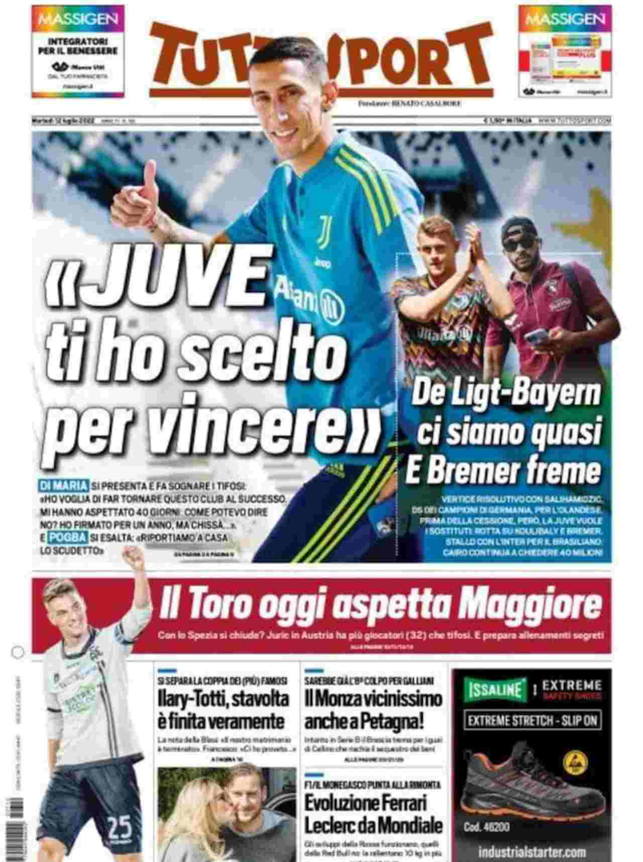 La rassegna stampa di Calciomercato.it vi propone i titoli principali sulla prima pagina di oggi, martedì 12 luglio 2022, di ‘Tuttosport’.