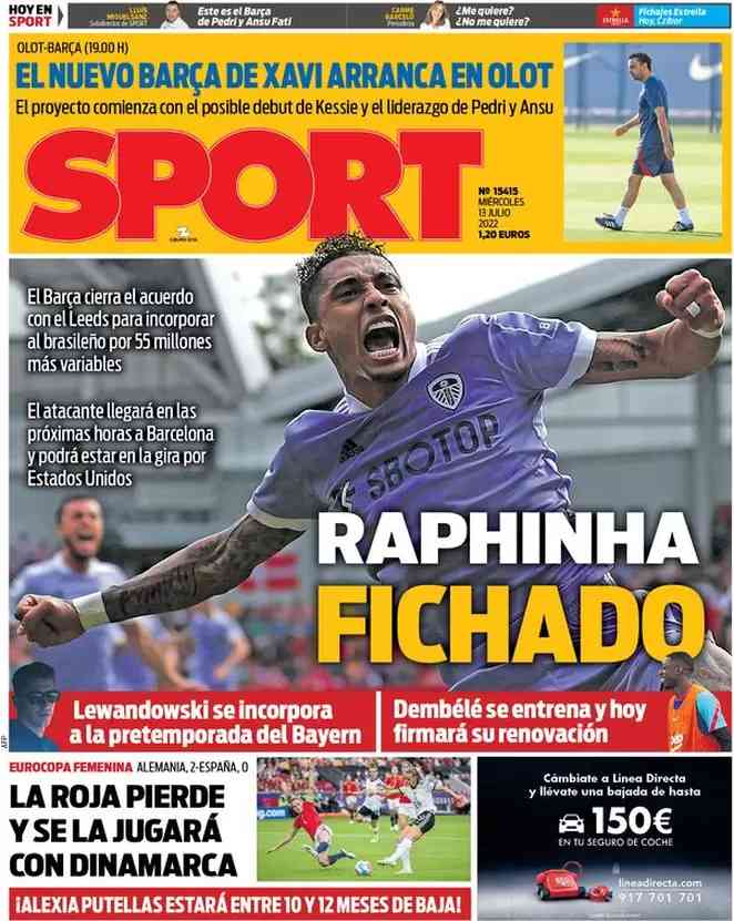 I titoli principali sulla prima pagina del quotidiano sportivo spagnolo, Sport