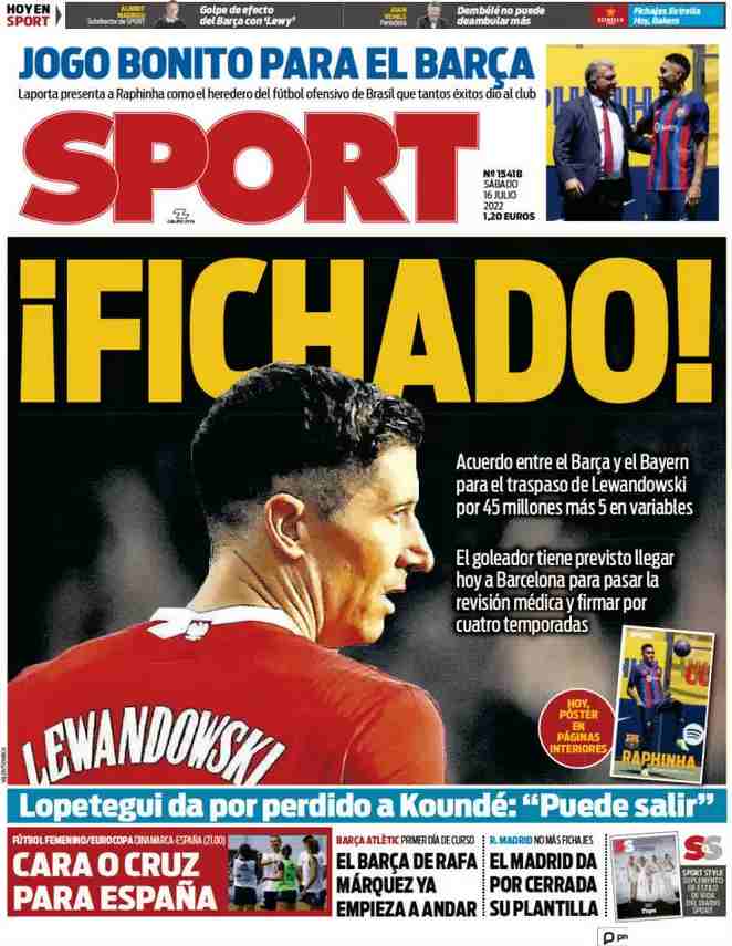 La rassegna stampa di Calciomercato.it vi propone i titoli principali sulla prima pagina di oggi, sabato 16 luglio 2022, di ‘Sport’.