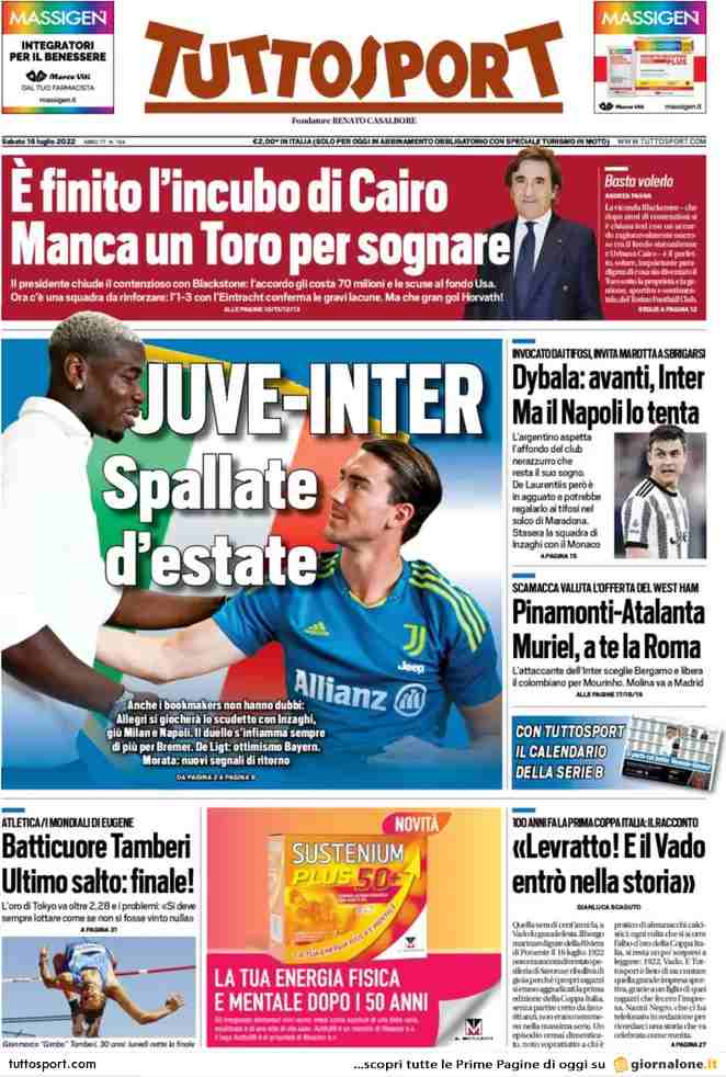 La rassegna stampa di Calciomercato.it vi propone i titoli principali sulla prima pagina di oggi, sabato 16 luglio 2022, di ‘Tuttosport’.