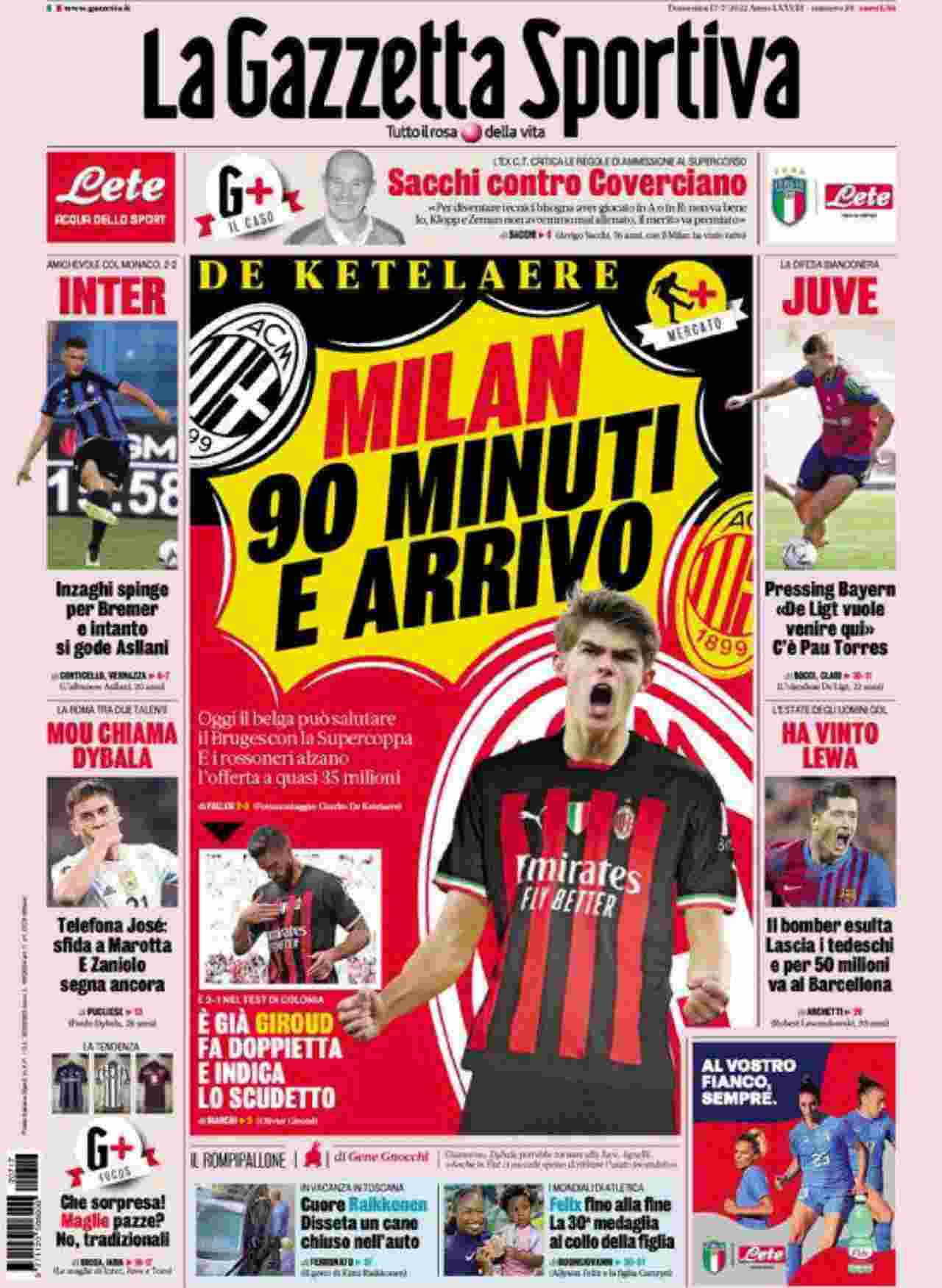La rassegna stampa di Calciomercato.it vi propone i titoli principali sulla prima pagina di oggi, domenica 17 luglio 2022, de ‘La Gazzetta dello Sport’.