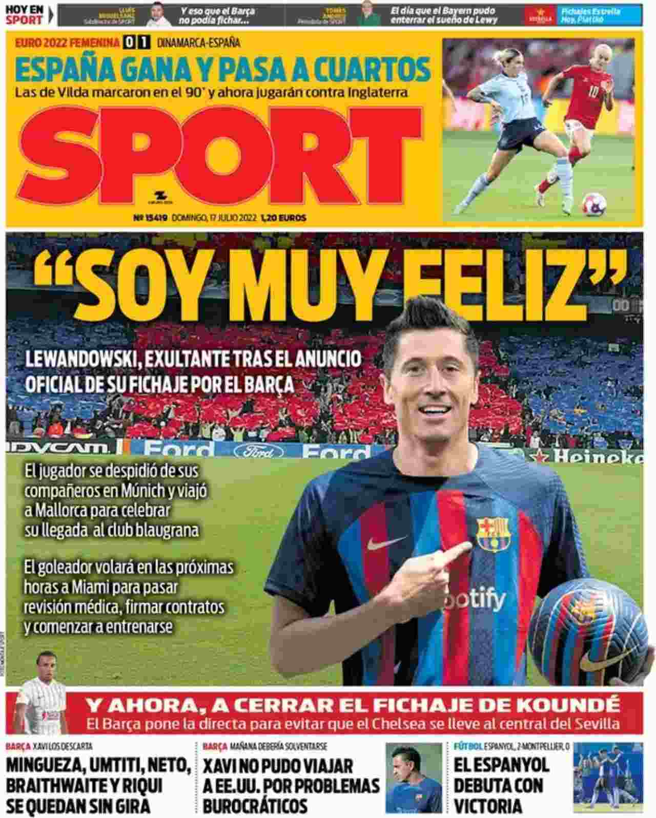 I titoli principali sulla prima pagina del quotidiano sportivo spagnolo, Sport
