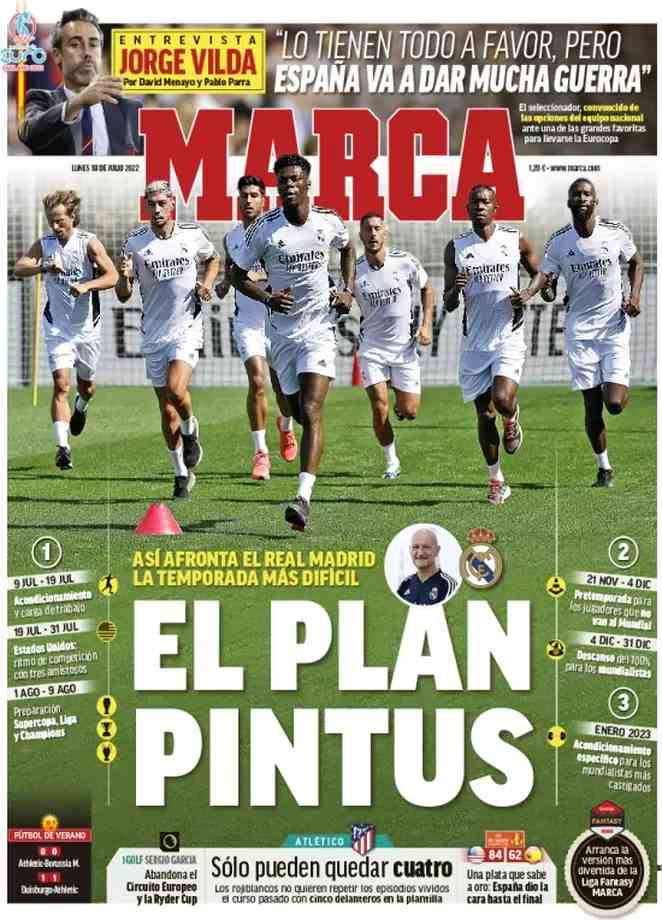 I titoli principali sulla prima pagina del quotidiano sportivo, Marca