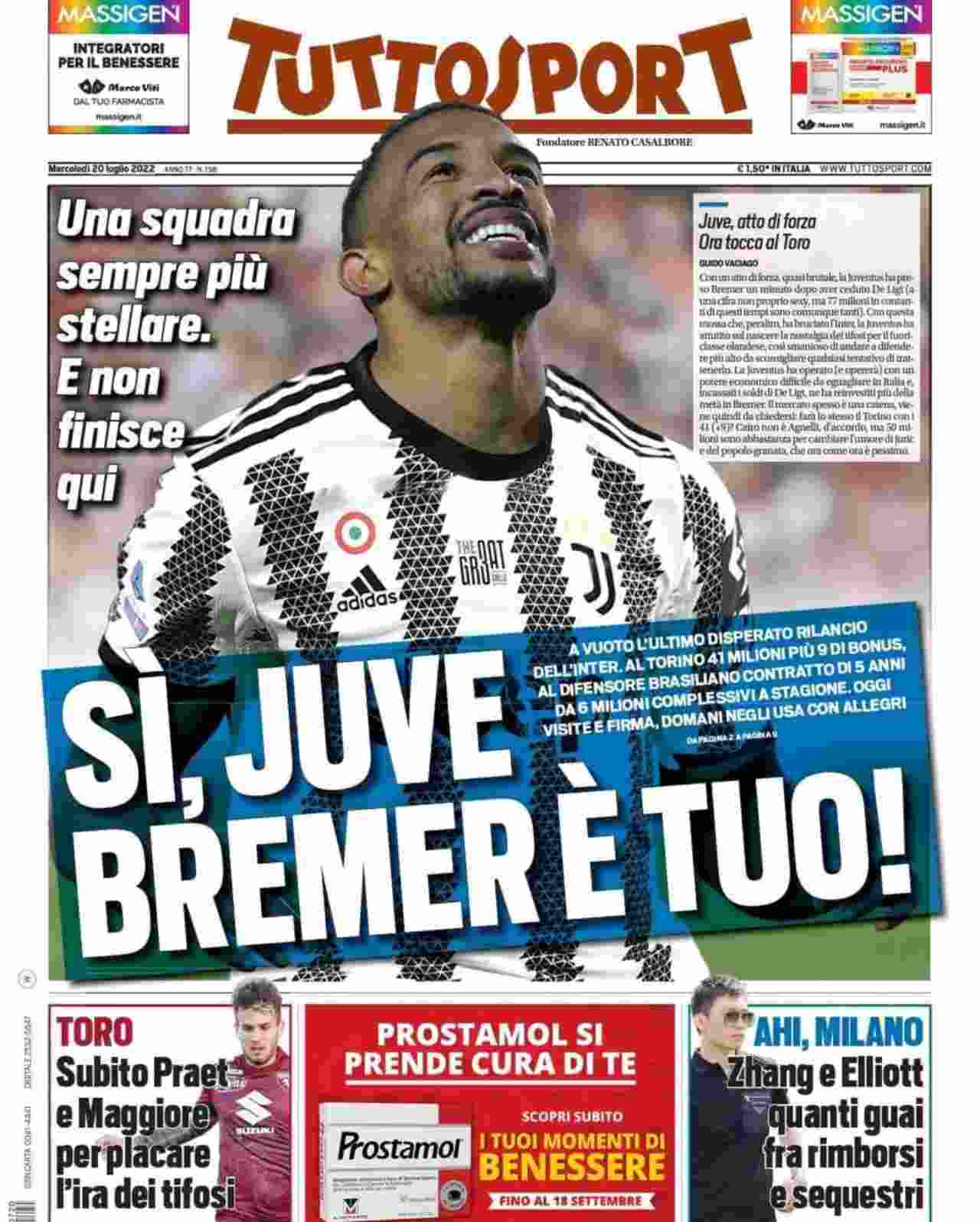 La rassegna stampa di Calciomercato.it vi propone i titoli principali sulla prima pagina di oggi, mercoledì 20 luglio 2022, di ‘Tuttosport’.