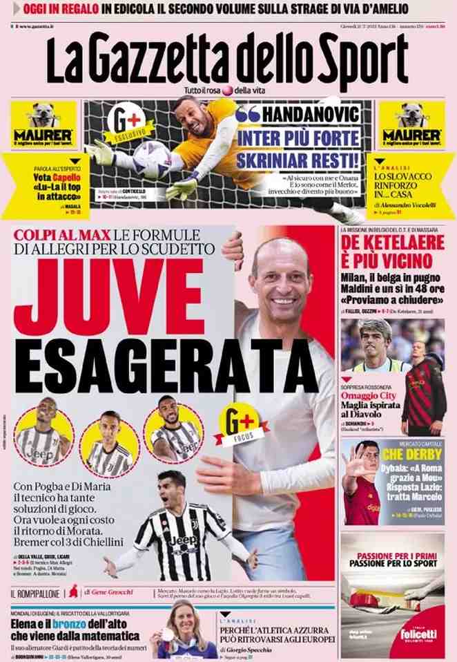 La rassegna stampa di Calciomercato.it vi propone i titoli principali sulla prima pagina di oggi, giovedì 21 luglio 2022, de ‘La Gazzetta dello Sport’.