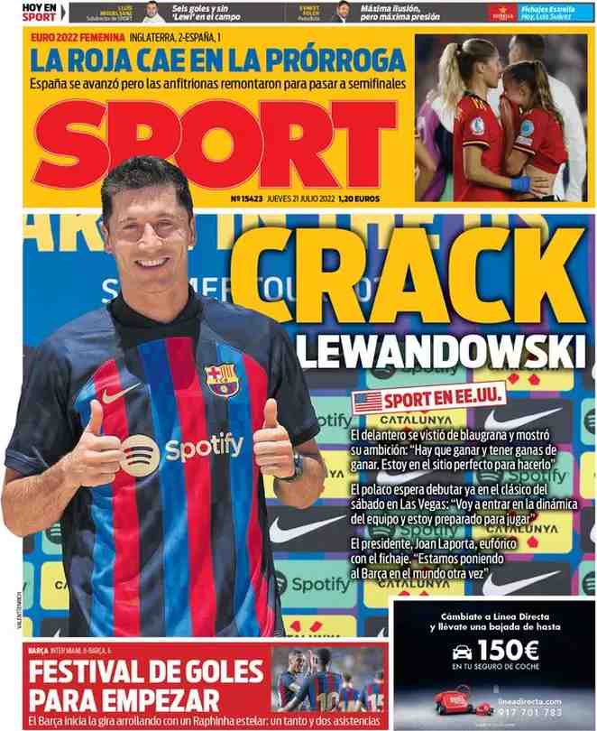 I titoli principali sulla prima pagina del quotidiano sportivo spagnolo, Sport