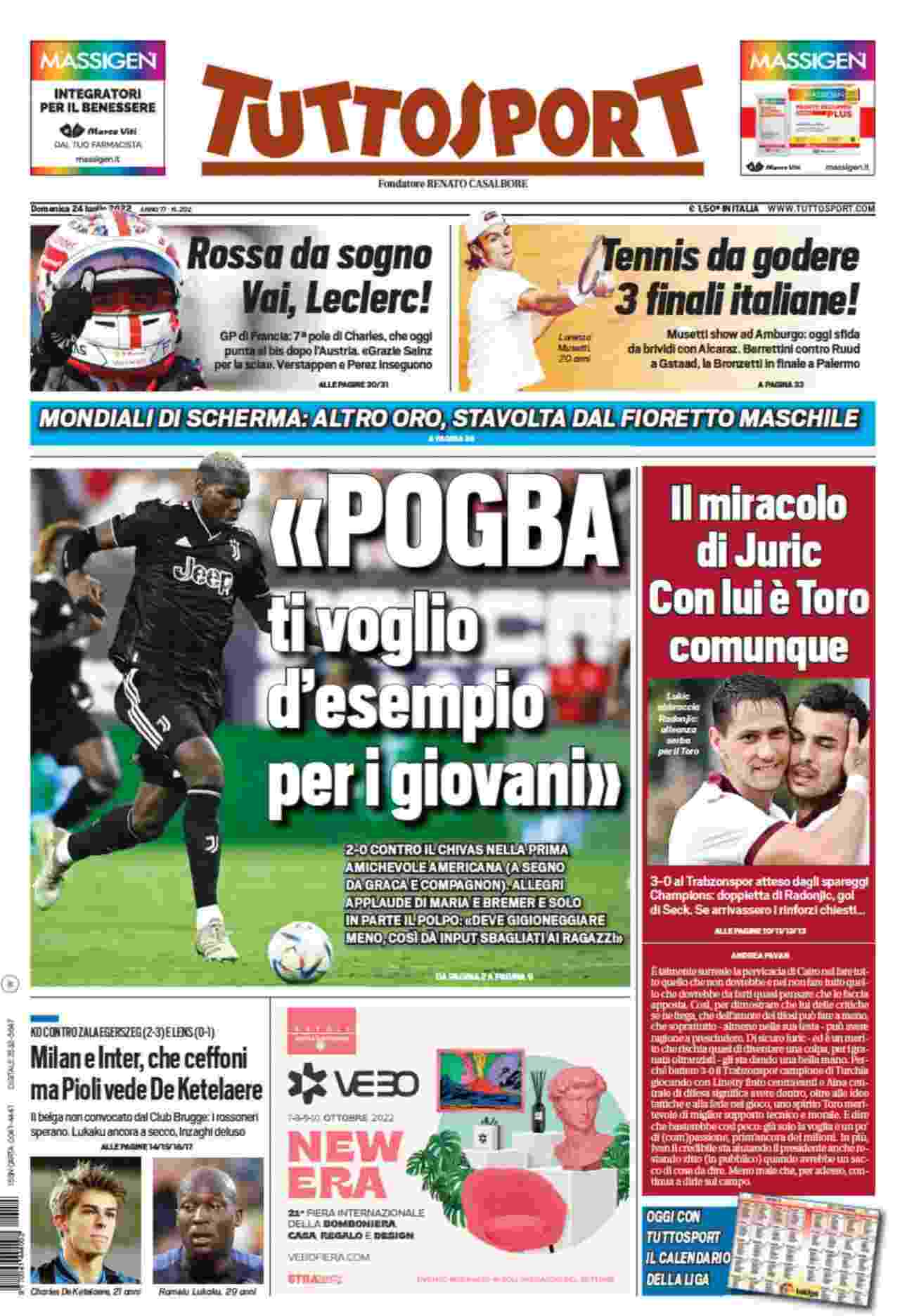 La rassegna stampa di Calciomercato.it vi propone i titoli principali sulla prima pagina di oggi, domenica 24 luglio 2022, di ‘Tuttosport’.