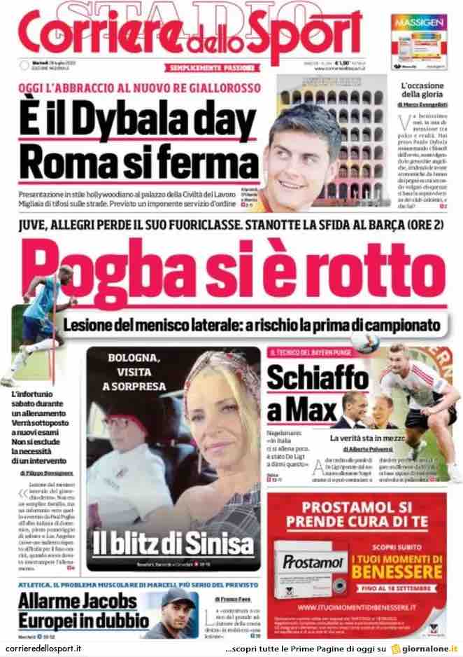 La rassegna stampa di Calciomercato.it vi propone i titoli principali sulla prima pagina di oggi, martedì 25 luglio 2022, del ‘Corriere dello Sport’.
