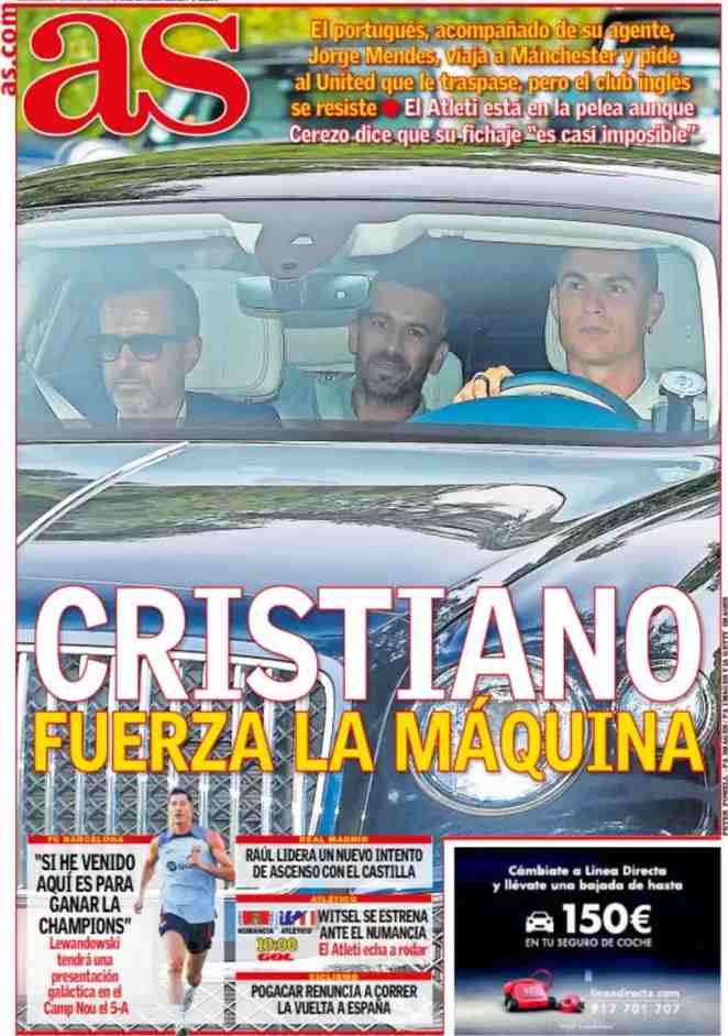 I titoli principali sulla prima pagina del quotidiano sportivo spagnolo, AS