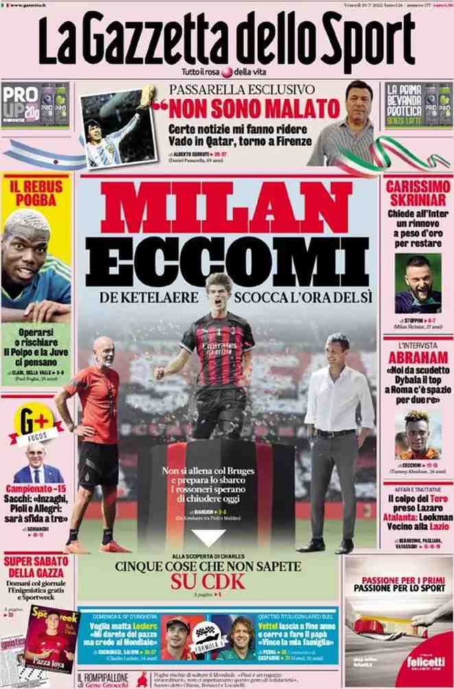 La rassegna stampa di Calciomercato.it vi propone i titoli principali sulla prima pagina di oggi, venerdì 29 luglio 2022, de ‘La Gazzetta dello Sport’.