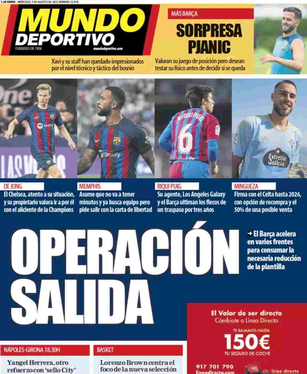 La rassegna stampa di Calciomercato.it vi propone i titoli principali sulla prima pagina di oggi, mercoledì 3 agosto 2022, del ‘Mundo Deportivo’.