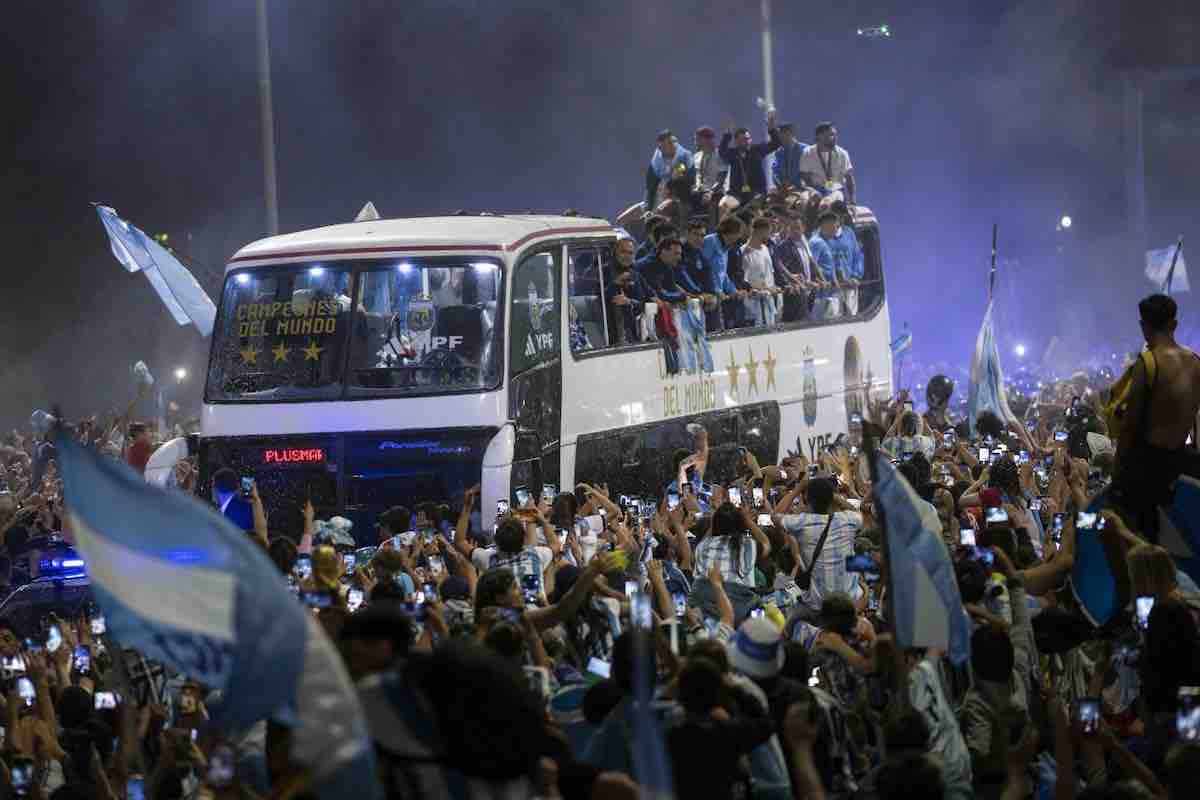 Pullman scoperto per Messi e compagni, pronti ad abbracciare i propri tifosi festanti ma il tour è durato poco. Come detto, a Buenos Aires, è accaduto qualcosa di davvero sconsiderato: due sostenitori dell’Argentina si sono lanciati da un ponte per raggiungere i giocatori sul pullman.