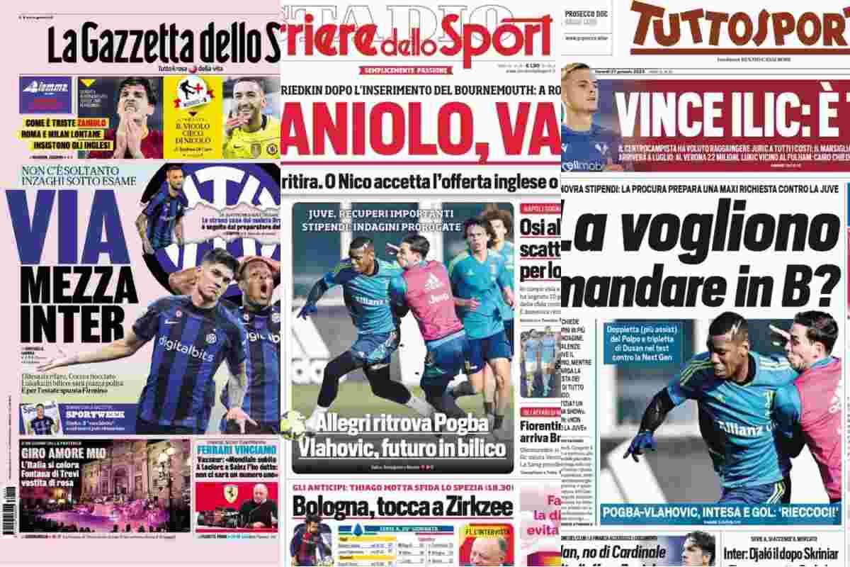 Da La Gazzetta dello Sport, al Corriere dello Sport e Tuttosport: ecco i titoli principali sulle prime pagine dei quotidiani sportivi italiani ed esteri di oggi, venerdì 27 gennaio 2023
