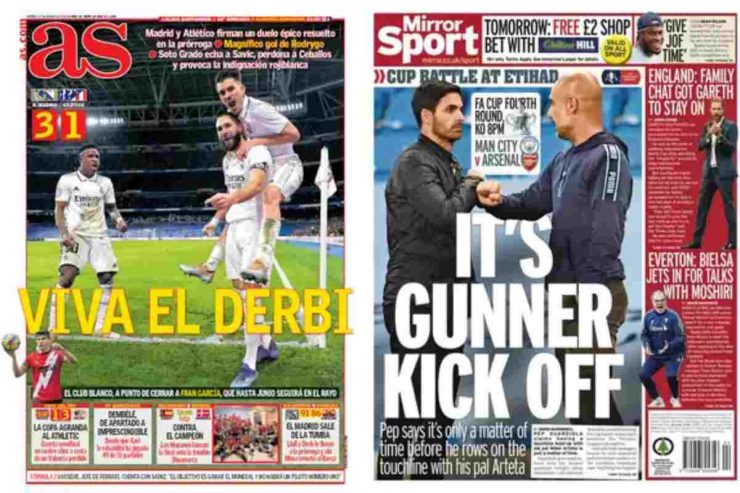 Sguardo anche alle aperture dei principali quotidiani sportivi esteri. Ieri sera si è giocato il derby di Madrid valido per la Coppa del Re.