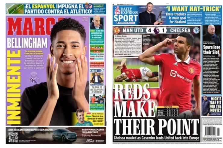 In Spagna, per il quotidiano Marca è imminente l’arrivo di Bellingham al Real Madrid. Il gioiello inglese del Borussia Dortmund si avvicina ai Blancos. Infine, in Inghilterra spazio al campo: il Manchester United travolge il Chelsea e conquista la qualificazione alla prossima Champions League.