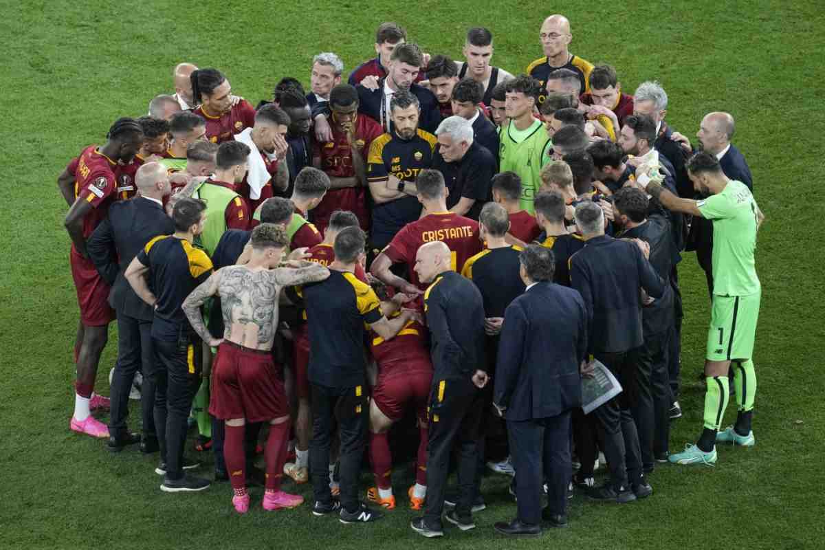 Appena dopo il penalty di Gonzalo Montiel i giocatori sono crollati in lacrime a terra, in primis Paulo Dybala. La Joya era uno dei più tristi, in lacrime, inconsolabile. Sentiva tanto questa partita, voleva a tutti i costi un trofeo europeo di club che gli è mancato con la Juventus. Senza poi considerare i tanti scenari possibili sul mercato estivo. Ma l’orgoglio per il percorso resta, non c’è dubbio. Dopo questa lotteria, i giocatori sono andati sotto la propria curva a ricevere l’abbraccio dei romanisti, da Belotti a Mancini hanno stretto la mano ai sostenitori giallorossi che comunque gli hanno mostrato il loro orgoglio. Poi Mourinho ha riunito la squadra in cerchio intorno a lui e ha fatto un discorso. “Vi ha visto tutta Europa, avete giocato una grande partita”, ha detto lo Special One. Che poi ha aggiunto “Voglio restare qui per voi, per voi!”