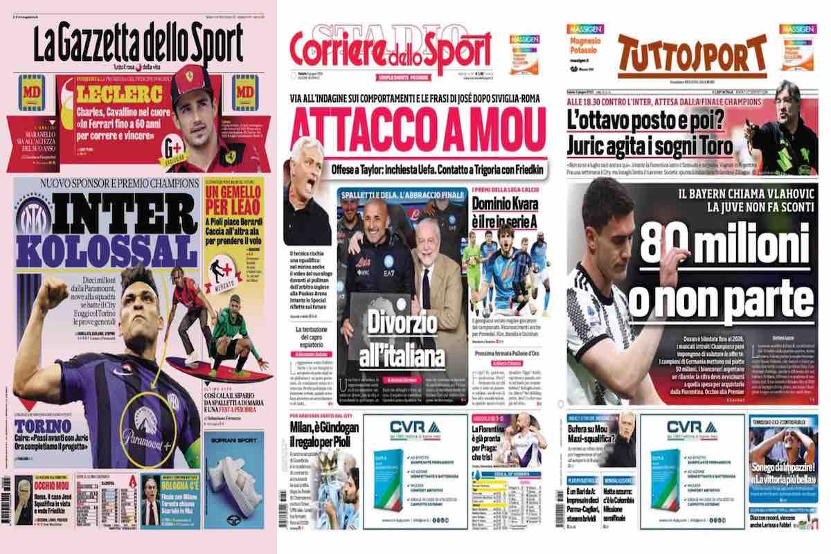 Da La Gazzetta dello Sport, al Corriere dello Sport e Tuttosport: ecco i titoli principali sulle prime pagine dei quotidiani sportivi italiani ed esteri di oggi, sabato 3 giugno 2023
