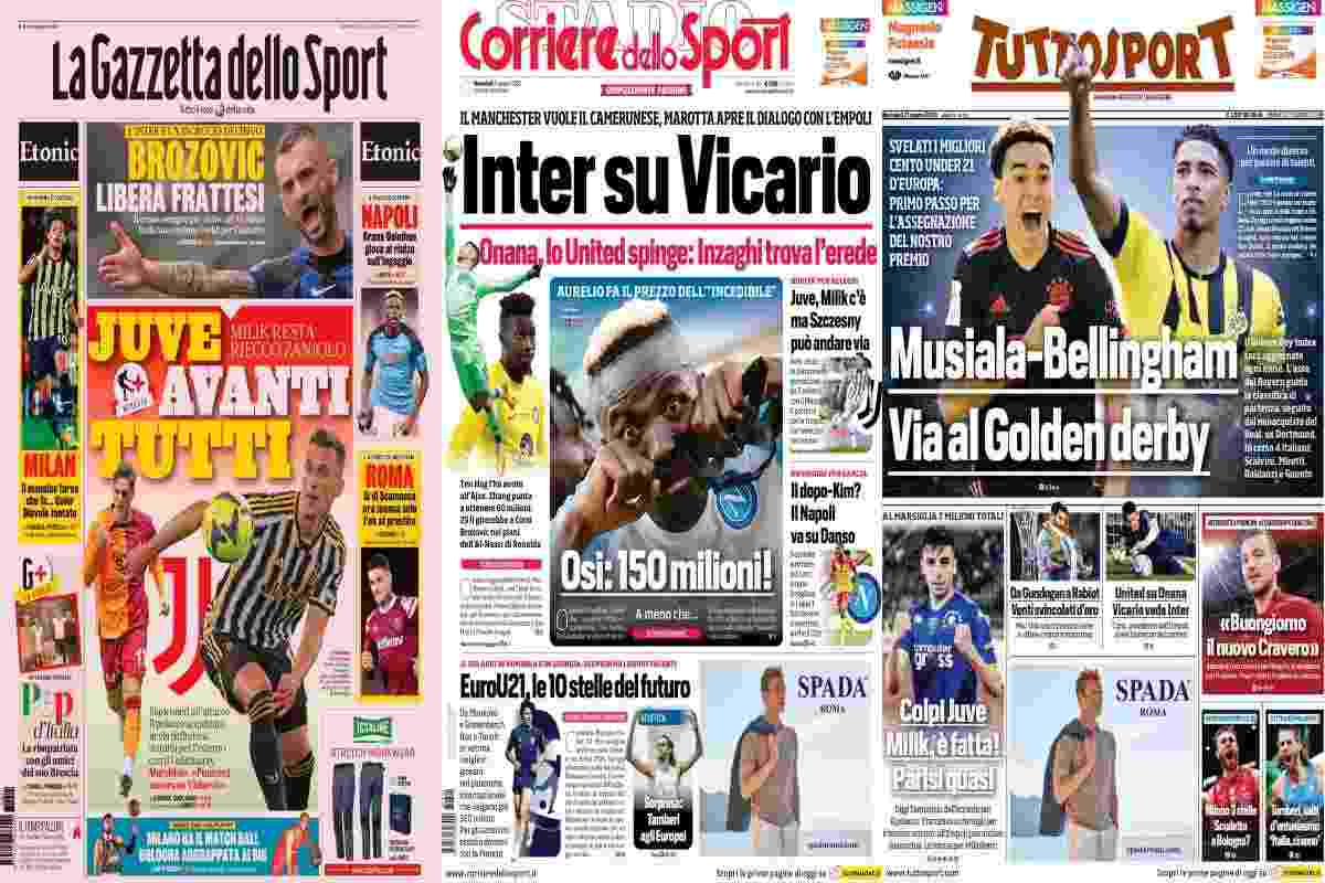 Sul ‘Corriere dello Sport’ il titolo principale è “Inter su Vicario“, con il portiere empolese che può diventare l’erede di Onana. “Osi: 150 milioni!“, è la valutazione del capocannoniere della Serie A, non sarà facile strapparlo al Napoli. La Juventus rischia di perdere un big: “Milik c’è, ma Szczesny può andare via“.