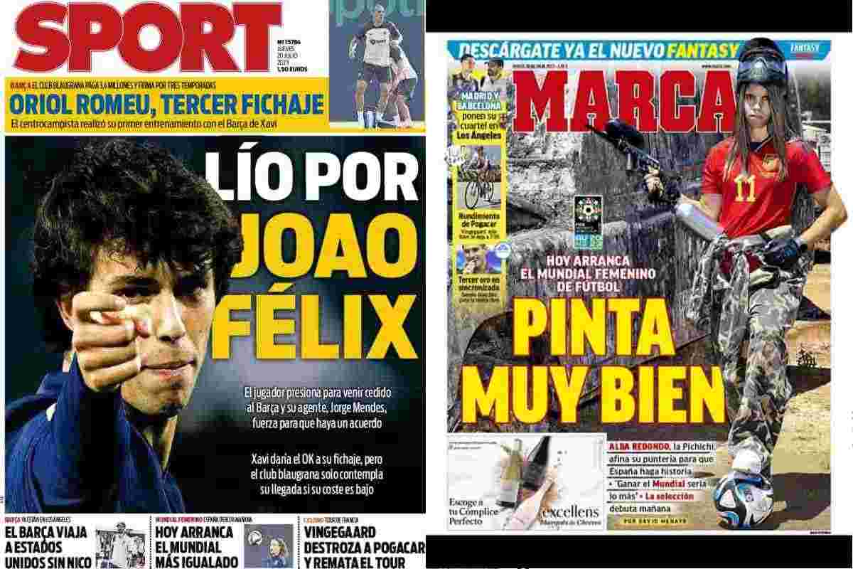 Su ‘Sport’, “Lio por Joao Felix“: il portoghese spinge per il Barcellona, che però accetterà solo in caso di costi contenuti. “Pinta muy bien” è invece il titolo con cui ‘Marca’ dedica l’apertura al Mondiale di calcio femminile che inizia oggi.