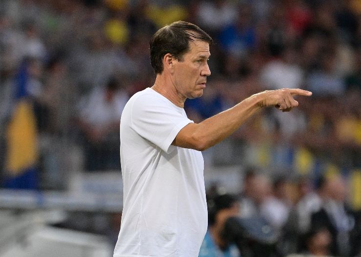 Rudi Garcia prende la parola in conferenza stampa dopo la vittoria in rimonta contro il Frosinone e un inizio di partita in salita