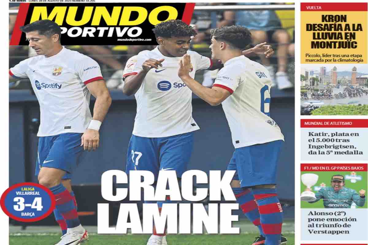 Girandola di emozioni in Villarreal-Barcellona: i blaugrana la ribaltato e tornano al successo. “Crack Lamine“, titola il Mundo Deportivo esaltando la prova del baby talento di Xavi, decisivo per la vittoria del Barça. “Estelar Lamine“, anche Diario Sport dà ampio risalto alle gesta del nuovo astro nascente della squadra catalana.