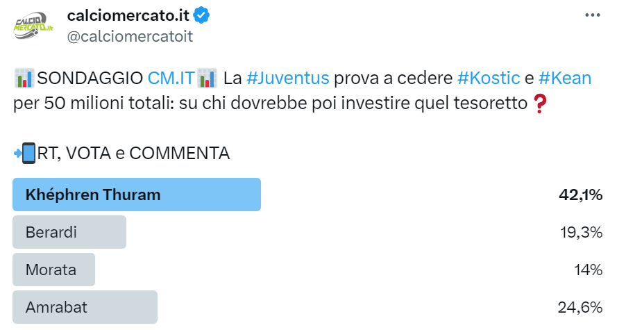 Indispensabili, in tal senso, saranno le cessioni sulle quali la società continua a lavorare. Su tutte, quelle che potrebbero garantire un bottino da circa 50 milioni di euro in entrata riguardano Moise Kean e Filip Kostic. Sul centravanti ad oggi non risultano offerte concrete, nonostante un timido interesse recente da parte del Milan. Maggiori chance di partire invece per l’esterno serbo, su cui non mancano le pretendenti dopo la prima buona stagione in Italia.