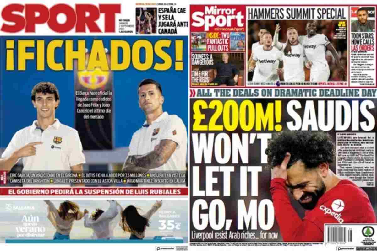 Calciomercato concluso anche all’estero. Il Barcellona mette a segno due importantissimi colpi, Joao Felix e Cancelo, mentre in casa Liverpool tiene banco la situazione legata al futuro di Salah. L’Arabia Saudita è ancora in pressing con offerte choc, il mercato chiuderà il prossimo 7 settembre.