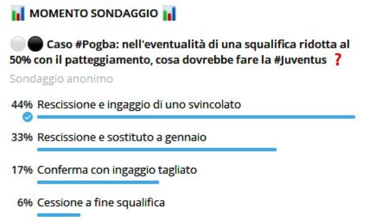 I tifosi bianconeri hanno già scaricato il giocatore. Per il 44% dei votanti su Telegram, infatti, il club bianconero dovrebbe rescindere con il francese ingaggiando uno svincolato. Rescissione e sostituto già a gennaio, invece, per il 33% degli utenti. Infine, seguono la conferma con ingaggio tagliato (17%) e la cessione a fine squalifica (6%). Si attendono ora i prossimi sviluppi della vicenda.