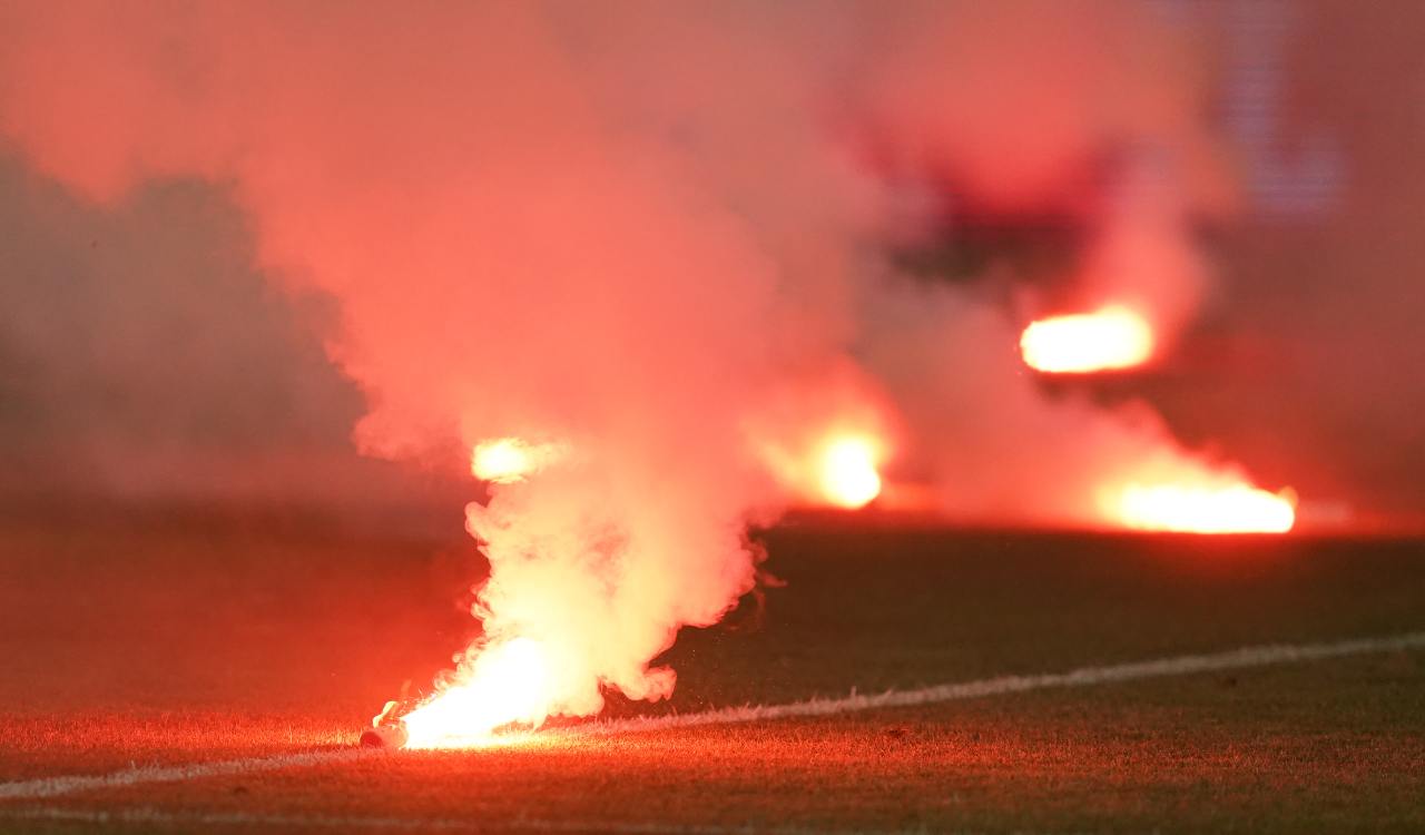 In particolar modo, alcuni esponenti della tifoseria di casa hanno iniziato a lanciare oggetti in campo, comprese delle bottiglie. L’arbitro olandese van de Eijk è stato così costretto a interrompere il gioco, salvo farlo riprendere dopo pochi minuti, quando la situazione è tornata alla normalità e si è così potuto riprendere a giocare, anche se in campo la formazione ospite ha definitivamente chiuso i giochi portando a casa tre punti preziosissimi in chiave salvezza.