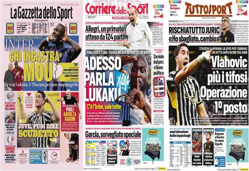 “Adesso parla Lukaku”, questa l’apertura del Corriere dello Sport. Domani Big Rom difende la sua Roma: c’è l’Inter, vale tutto. Allegri, un primato atteso da 124 partite. Garcia, sorvegliato speciale. Zaniolo dal pm: “Sono pulito”. Salernitana nei guai: ko a Marassi.