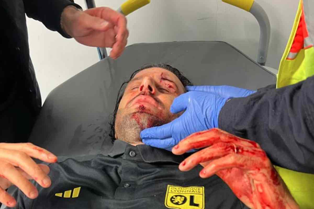 Immagini shock arrivano dalla Francia: il tecnico italiano è stato colpito al volto, dopo gli scontri fuori dallo stadio