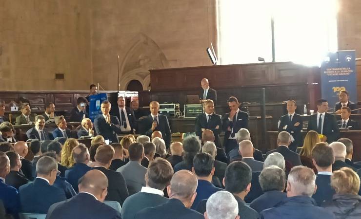 Nella sala dei Baroni del Maschio Angioino di Napoli si è svolto l’evento per il centenario della Sezione AIA di Napoli “Ottavio Anzano”. Invitati speciali diversi direttori di gara di Serie A, come Fabio Maresca, Daniele Orsato, Michael Fabbri, Daniele Chiffi, Marco Guida o anche ex come Paolo Valeri e Nicola Rizzoli. Immancabile Carlo Pacifici, presidente dell’Associazione Italiana Arbitri.