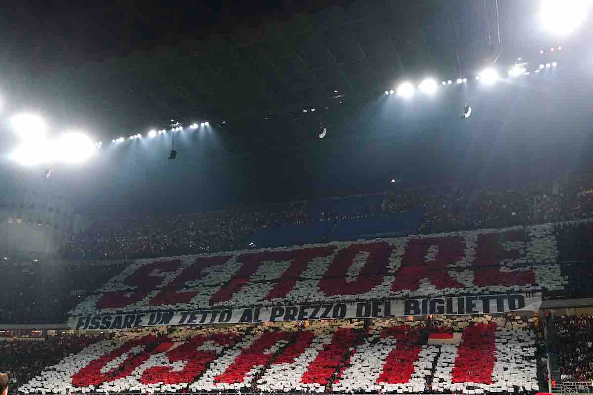 Continua la protesta della Curva Sud, che a San Siro, prima del calcio d’inizio del match tra il Milan e l’Udinese ha esposto uno striscione contro il caro-biglietti in trasferta.