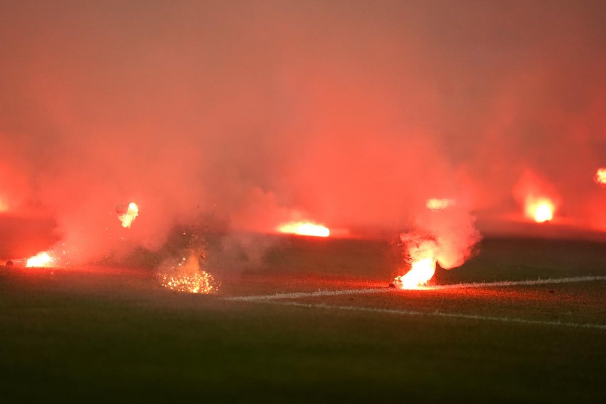 Una partita che non sta filando liscia visto che l’arbitro è stato costretto ad interrompere il match per qualche minuto. Tutto accade al 27′ quando il direttore di gara – con l’aiuto del Var – ha assegnato un calcio di rigore ai padroni di casa. È a questo punto che dal settore di stadio occupato dai tifosi bosniaci è iniziato un fitto lancio di fumogeni all’interno del terreno di gioco.