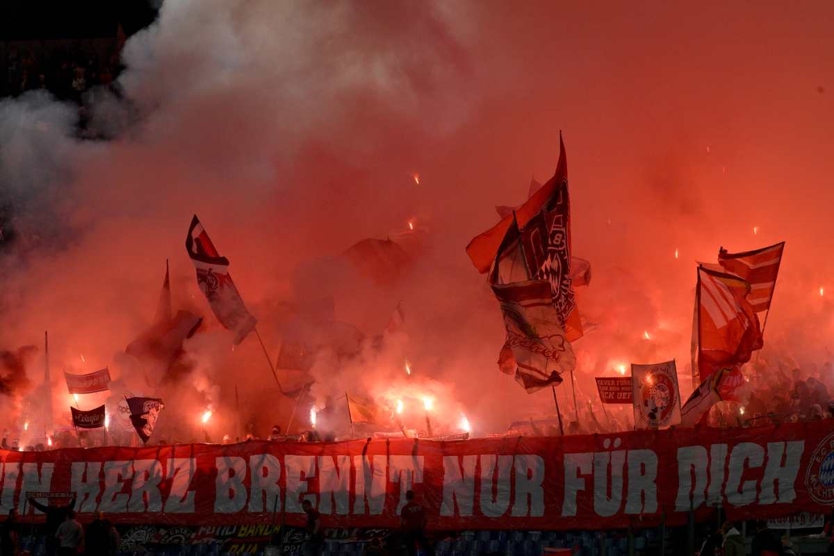 Sono giorni di sfide sentitissime nella capitale, con la squadra di De Rossi che invece domani sera affronterà in trasferta il Feyenoord a Rotterdam. Un binario che corre tra le due partite, ma anche tra le due tifoserie per lo striscione apparso addirittura nel settore ospiti dell’Olimpico occupato dai sostenitori del Bayern. “Roma o Rotterdam, fa…lo le autorità autocratiche. No ai tifosi in trasferta, nessuno spazio per il calcio”, il messaggio nello spicchio degli oltre 5mila bavarei. Il riferimento è al divieto di trasferta imposto a entrambe le tifoserie di Roma e Feyenoord per il playoff di Europa League dopo i precedenti degli scorsi anni con disordini nella capitale (soprattutto) e in Olanda.