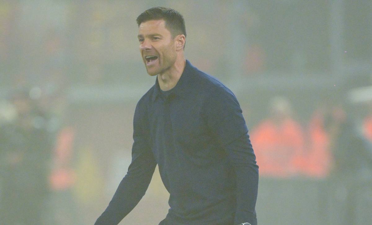 Xabi Alonso fuori di sé alla decisione dell’arbitro su un contatto Adli-Mancini che avrebbe aperto il campo al 21 del Bayer