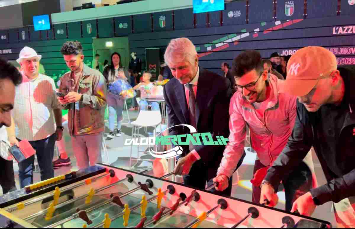 Vera e propria star il ministro Abodi, che si è intrattenuto con tanti tifosi firmando maglie, scattando selfie e concedendosi anche a una partita a biliardino con i tifosi. Prima da portiere, poi da attaccante. Il tempo di qualche minuto, per lasciare le sue impressioni. “Ho visto benissimo la squadra, Spalletti è la guida giusta per questi giocatori, ho visto grande sincronia”, le parole del ministro.