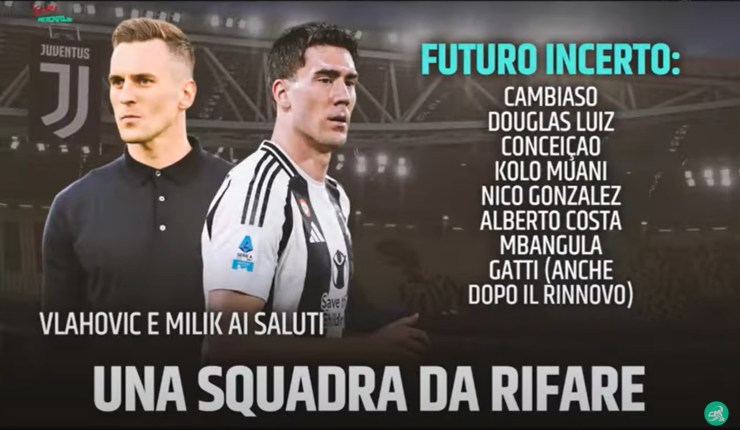 Si va da Cambiaso a Mbangula, dall’ultimo arrivato Alberto Costa (fin qui un enorme punto interrogativo a Nico Gonzalez, fino a Conceicao, l’oggetto misterioso Douglas Luiz e Kolo Muani. Sicuri partenti, ovviamente, sia Milik (che ha rinnovato solo per spalmare ingaggio) e Dusan Vlahovic il cui contratto scade nel 2026.